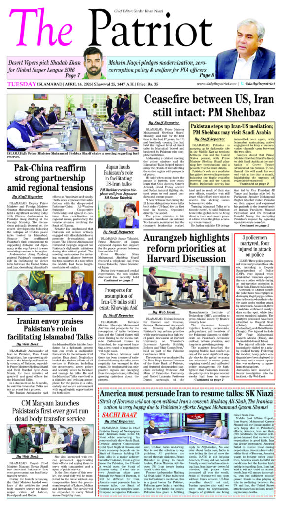 Strait of Hormuz will not open without Iran’s consent: Mushtaq Ali Shah, The Iranian nation is very happy due to Pakistan’s efforts: Seyyed Mohammad Qasem Shamsi By Staff Reporter ISLAMABAD: Editor in Chief Pakistan Group of Newspapers and Chairman Roze News SK Niazi while conducting his renowned talk show Sachi Baat, Defense analyst Commodore (retd) Syed Wajih […]