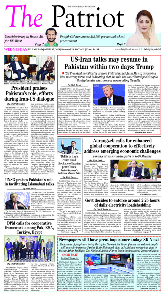 Pakistan has prevented a third war: Aftab Hussain, Pakistan is playing an important role in the region: Muhammad Ali Durrani, Their dream of a Greater Israel has been shattered: Shahid Hassan Siddiqui By Staff Reporter ISLAMABAD: Editor in Chief Pakistan Group of Newspapers and Chairman Roze News SK Niazi while talking in his renowned talk […]